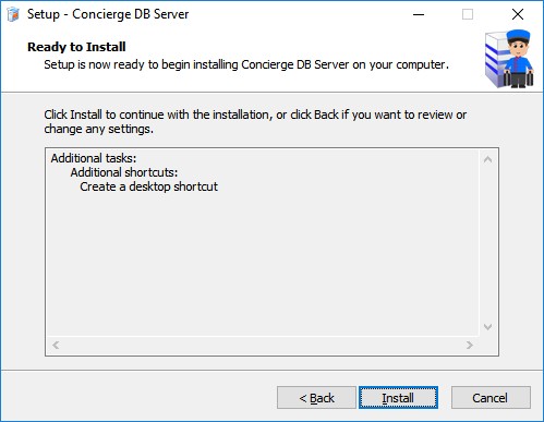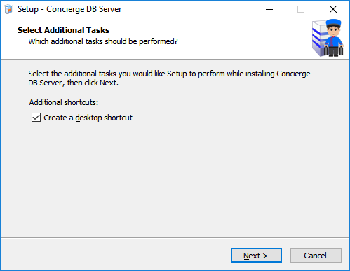 On the computer you will be running the Concierge Database Server, click the following link and select the option to RUN depending on the browser you're using. The installation will then download and run. The setup Wizard will now guide you through the installation...